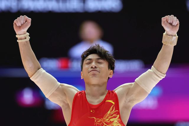 除了张清颖夺平衡木金牌,洪延明凭借高完成分问鼎鞍马桂冠就是另外一个惊喜时刻,这是中国队在本届世锦赛的第一金,而首次出战世锦赛就有金牌入账,19岁的洪延明可谓前途无量。 相比洪延明和张清颖摘金多少是计划外惊喜,邹敬园夺金完全是一切尽在掌控中,比预赛就以15.466分刷新本届赛事单项最高分纪录,而决战再次演绎教科书般的双杠成套,凭借15.300的高分毫无悬念夺冠,成就世锦赛四冠伟业。成绩胜于一切,邹敬园从东京到巴黎奥运周期强势统治双杠,进入到洛杉矶周期他的双杠照样是无解的存在,这么说吧,邹敬园的唯一对手还是他自己,而中国队也因为邹敬园的存在拥有一个最稳金牌点。